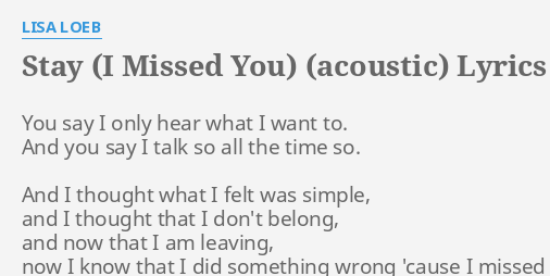 Chord Stay Lisa Loeb Tab Song Lyric Sheet Guitar Ukulele Chords Vip from www.chords.vip And you say i only hear what i want to: You say i talk so all the time so. Our belief system is just like a mirror that only shows us what we believe. And you say i only hear what i want to: You say i only hear what i want to. I don't pay attention to the distance that you're running. Youtube actress and singer annie leblanc has covered this song in brat's chicken girls the movie. Sure i'll have a beer.